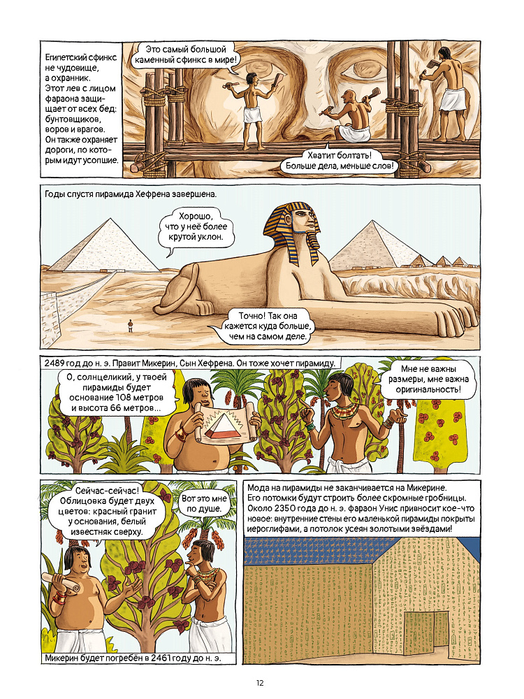 Этот яркий и увлекательный комикс расскажет нам историю их создания, секреты строительства и причины исчезновения. Мы совершим путешествие сквозь века и цивилизации, чтобы своими глазами увидеть правителей и учёных, архитекторов и мастеров, послушать их споры, понаблюдать за работой и, наконец, узнать, на чём висели сады Вавилона, что натворил Герострат и кому мы обязаны словом «мавзолей».