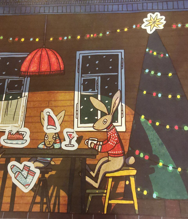 Календарь состоит из картонки с окошками, внутри которых спрятались наклейки, и открытки с затерянной в лесу избушкой. Каждый день, начиная с 1 декабря, нужно открывать по одному окошку, отклеивать наклейку и помогать готовиться к празднику зайцам и мышкам: украшать дом елочными игрушками, свечками, развешивать носки, раскладывать на столе пряники и кексы... Когда 31 декабря будет открыто последнее окошко, и у зверят, и у ребят наступит долгожданный Новый год!
