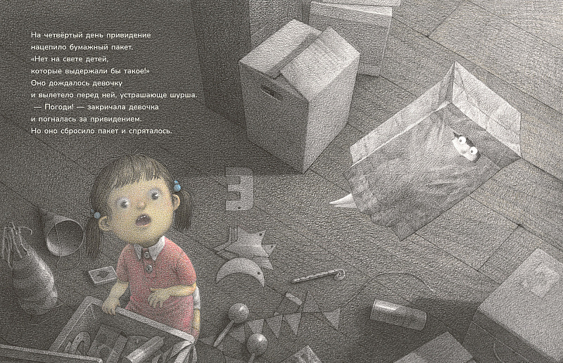 Но однажды на чердаке появилась маленькая девочка. Она стала приходить туда каждый день, чем очень разозлила привидение, которое привыкло к уединению. Как же избавиться от докучливой малявки? Может, напугать её как следует?
