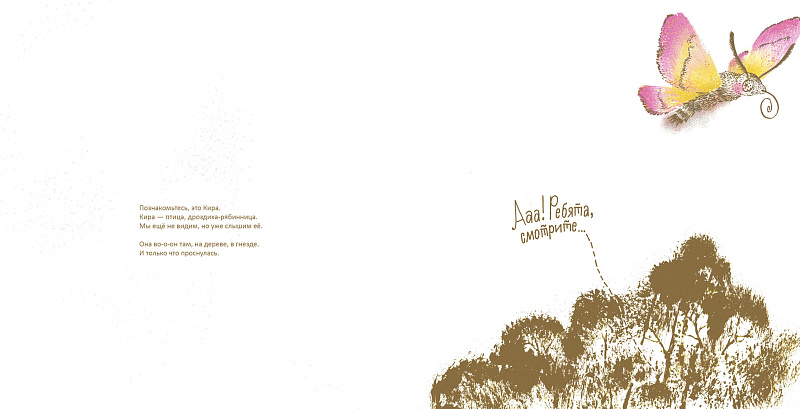 История одного птенца, рассказанная им самим. Кира только что выпала из гнезда, ей предстоит встреча с опасной куницей, дружба с ящерицей и настоящее лесное спа!