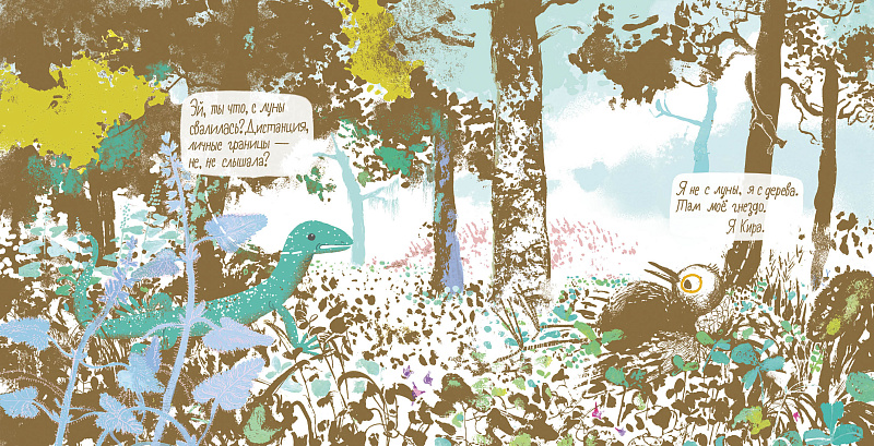 Что касается визуальной части, то это моя песнь лесу средней полосы. Я решила придумать для него цвет, цвет-солист. С одной стороны, это сдержанный цвет, с другой – яркий. В зависимости от ситуации. С одной стороны, фон для чего-то эдакого (те же лишайники или орхидеи), с другой – сам по себе цвет-визитная-карточка и изюминка всему. Особенно интересно мне было подойти с разных сторон к темам дома и дружбы, симбиоза. Как это устроено у других живых существ? А, может, нам есть чему у них поучиться?