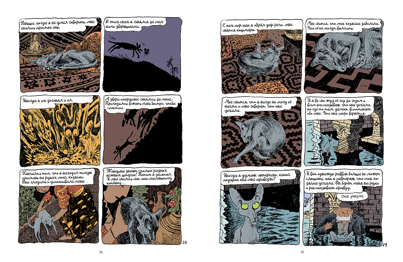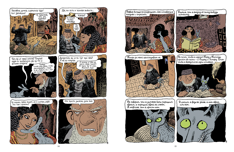 В «Коте раввина» Жоанна Сфара текст и рисунок сливаются в танце, одновременно священном и скептическом, безукоризненно изящном и неуклюже человеческом. Я обожаю эту книгу.