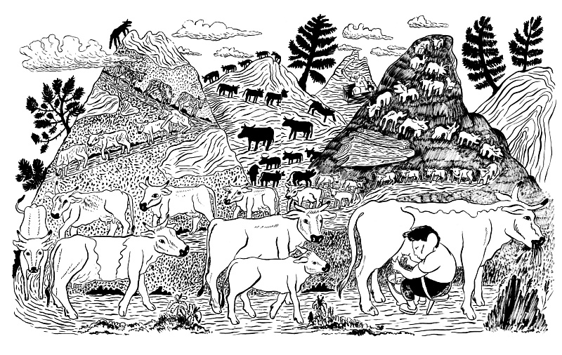 Тяготы сельскохозяйственных работ и неутомимость, с которой Эрнст справляется с полными тяжелейшего труда буднями, очерчены грубоватыми штрихами. Вкраплённые между ними пейзажи, напротив, нарисованы тонким пером и эффектно передают красоту и беспощадность природы, окружающей мальчика. В остальных эпизодах Нюссли прибегает к фантастическому, порой доходящему до сюрреализма стилю, благодаря которому некоторые особенно болезненные переживания главного героя походят на сцены из ночных кошмаров.