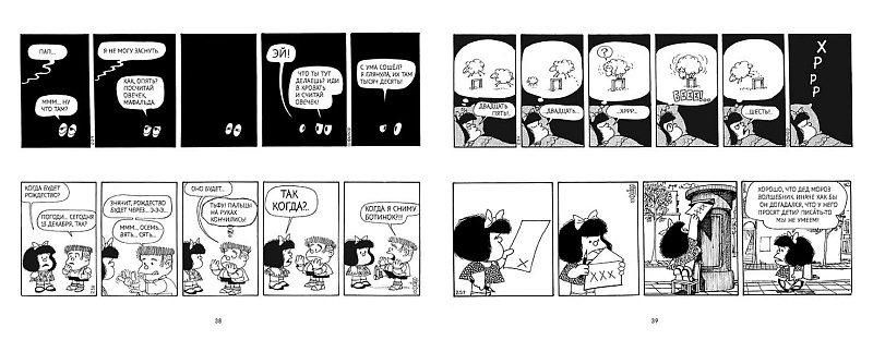 «Мафальда. Всё сложно не по-детски» – долгожданная первая публикация Ки́но на русском языке. В этот сборник вошли сюжеты, которые будут понятны и близки читателям любого возраста. Помимо классических стрипов периода 1964–1973 годов в него включён особый проект Ки́но 1977 года – «Декларации прав ребенка, прокомментированная Мафальдой и её друзьями для Детского фонда ООН (ЮНИСЕФ).