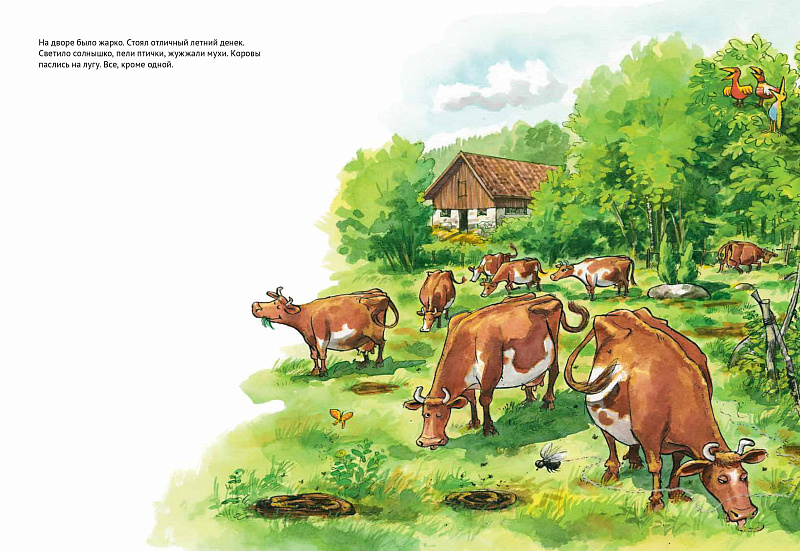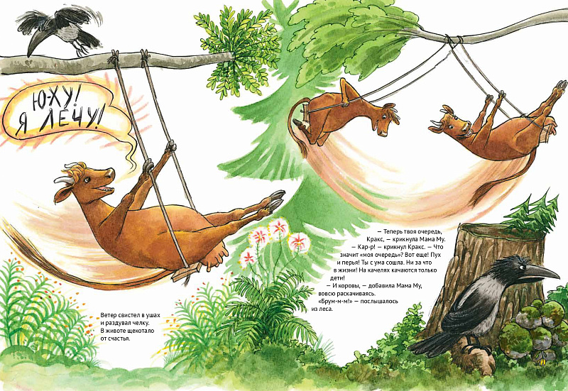 На дворе был отличный летний денек. Светило солнышко, пели птички, жужжали мухи. Коровы паслись на лугу. Все, кроме одной. Что затеяла Мама Му на этот раз? Зачем ей доска и веревки? И почему Кракс опять недоволен? Как бы то ни было, друзьям всегда весело вдвоем, приключения не кончаются!