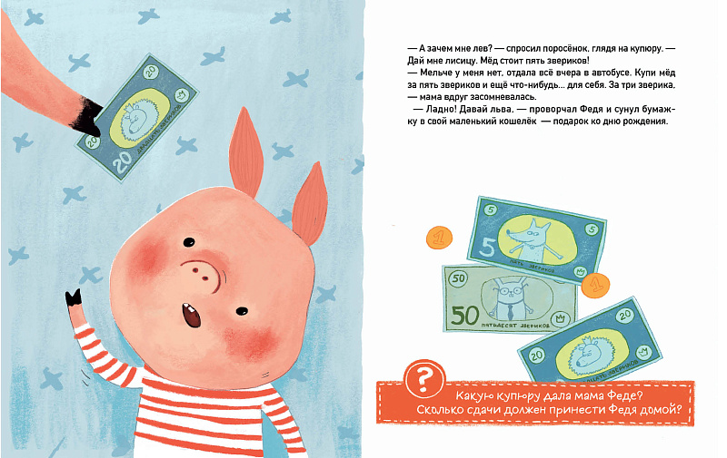 <p> Каждый поросёнок может иметь свой бизнес! Ваш поросёнок хочет стать бизнесменом? Познакомьте его с Федей — сэкономите деньги. </p> <p> Ваш поросёнок не хочет стать бизнесменом? Познакомьте его... с Федей. Сэкономите время! Совсем недавно Федя не умел даже считать сдачу, но на помощь ему пришел опытный и надёжный бизнес-партнёр — Корова. Она научила поросёнка основам бизнес-планирования, свободе и ответственности предпринимателя. Вместе они стали настоящей легендой лесной ярмарки! </p> <h2>5 причин купить книгу «Первый бизнес поросёнка Феди»:</h2> <ul> <li> <p> «Первый бизнес поросёнка Феди» – вдохновляющая история начинающего предпринимателя. Никаких непонятных терминов и скучных теорий! </p> </li> <li> <p> … поэтому книга станет отличным первым самостоятельным чтением; </p> </li> <li> <p> «Но зачем первокласснику читать о предпринимательстве?», — спросите вы. Бизнес для Феди – это не только расчёты и планирование, но и структурное мышление, креативность, а иногда даже... стрессоустойчивость; </p> </li> <li> <p> Отвечая на вопросы и выполняя интересные задания, читатель и сам чувствует, как это — иметь своё дело; </p> </li> <li> <p> А ещё у «Поросёнка» отличные и очень весёлые иллюстрации! </p> </li> </ul> <b>О СОЗДАНИИ КНИГИ:</b> <p> Идея книги «Первый бизнес поросёнка Феди» родилась у Наталии во время учёбы в Британской школе дизайна. А в 2019 году книга стала победителем конкурса «Книга внутри» в номинации нон-фикшн! </p>
