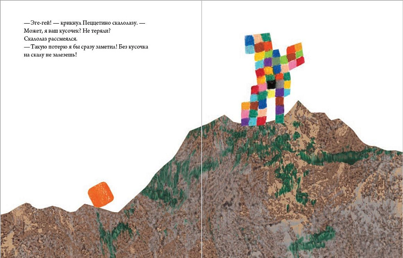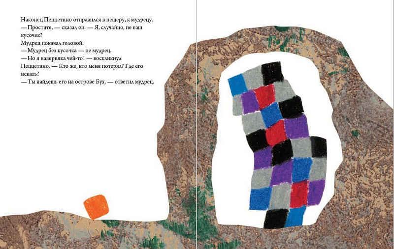 Чудная книга Лео Лионни о герое, который чувствует себя слишком простым и маленьким в мире больших и сложных, вышла еще в 70-ые годы, и стала одной из первых детских книг, где история рассказана с помощью искусства авангарда. Герои «Пеццетино» сделаны в технике коллажа, и понять их настроения и характеры читать может благодаря цвету и форме. Оказывается, художнику вовсе не обязательно изображать привычные предметы, чтобы выразить свои чувства!