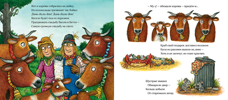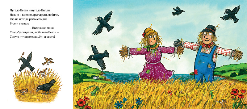Перед вами - книга, ранее выходившая под названием «Самая лучшая свадьба».<i><br> </i><i><br> </i><i>Пугало Бетти и пугало Билли</i><br> <i>Нежно и крепко друг друга любили.</i><br> <i>Раз на исходе рабочего дня</i><br> <i>Билли сказал:</i><br> <i>- Выходи за меня!</i><br> <br> …"Согласна! Ура!" - сказала Бетти, и молодые принялись за приготовления. Портной паучок сшил пышное платье из белых как снег гусиных перьев. Коровы одолжили свои колокольца - чтобы весело трезвонить на свадьбе. Краб нанизал бусы из пестрых раковин. Шустрые мышки обшарили двор - добыли кольца от стареньких штор. Осталось нарвать большущий букет, и Билли отправился за ним.<br> Но вот прошел один день, за ним второй, а Билли все нет. Бетти в тревоге: вдруг он другую навек полюбил? А между тем, фермер выставил в поле новое пугало - Гарри. Он франт и любезник и хочет расстроить свадьбу.<br> Джулию Дональдсон называют "детским Шекспиром сегодня", а Аксель Шеффлер - один из самых ярких и узнаваемых иллюстраторов наших дней. "Самая лучшая свадьба" - долгожданная новинка этих талантливых авторов.<br> …И, кстати, сможете ли вы найти в книге Груффало?<br>