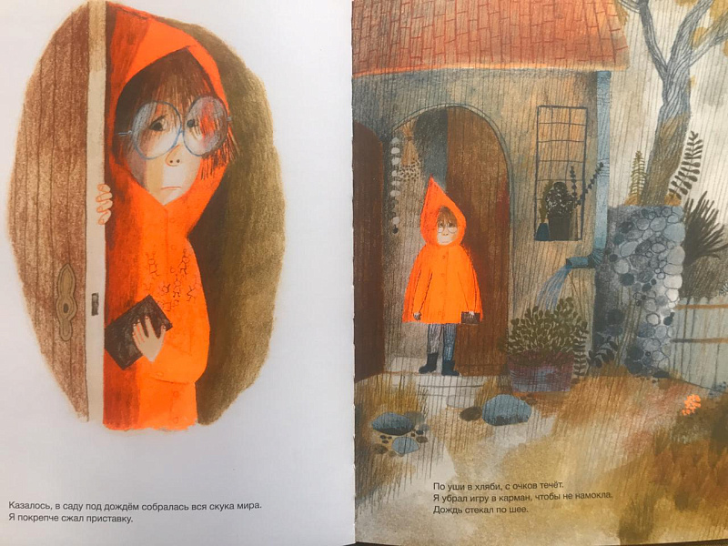Что делать на даче, пока мама работает, а за окном льет дождь? Конечно, играть в приставку, стрелять марсиан! Жаль, мама не согласна и ворчит, что это пустая трата времени! Но, оказывается, на улице, без приставки, тоже есть жизнь, да еще и какая волшебная…Невероятная реальность самого обычного дня в иллюстрациях Беатриче Алеманьи (одной из самых известных художниц книги в мире) завораживает и героя книги, и читателей. Вместе мы заблудимся в лесу, увидим мельтешение неизвестных микроштук в земле, волшебные камушки в пруду и удивительный свет сквозь тучи, услышим грохот собственного сердца. Так удивляться миру могут только дети и самые талантливые авторы детских книг! <br> <br>  В этом упоении звуками, видами, шумом природы Беатриче Алеманья высвечивает (в буквальном смысле — своей потрясающей работой с цветом и фактурой) — возможности и необходимость природы для человека. Причем, все это — с ощущением игры и восторга, а не назидательности. <br> <p> Издания книг Беатриче Алеманьи на русском давно ждали многие любители иллюстрации. В 2014 году она приезжала с мастер-классами в Россию. </p> <p> ОТЗЫВЫ ПРЕССЫ </p> <p> <b>Журнал Arzamas:</b> </p> <p> <i>Беатриче Алеманья — одна из главных современных детских иллюстраторов. В рисунке она сочетает множество техник и фактур, игнорирует перспективу и анатомию, но внимательно следит за детскими гримасами и подробнейше составляет пейзажи и интерьеры.</i> </p> <p> <b>Сайт об иллюстрации «Картинки и разговоры»</b><b>:</b> </p> <p> <i>Алеманья также оказала огромное влияние на последующее поколение художников, особенно - на самых юных иллюстраторов, которые работают прямо сейчас. Вообще, это удивительно, как художник, находясь на пике своей карьеры, в самом расцвете сил, уже стал живой легендой.</i> </p> <p> О СЕРИИ «ЛЕГЕНДЫ ИЛЛЮСТРАЦИИ»: </p> <p> Художники детской книги – народ героический. Как-то один художник уехал жить в лес. А другая художница поехала в Африку и всю жизнь заботилась там о львах, а заодно рисовала про их книжки. Жизнь художника детской книги полна подвигов больших и малых. Об этих подвигах мы и рассказываем легенды. Это не такие легенды, которые можно поставить на полку и иногда смахивать с них пыль. Наша серия – не энциклопедия древних мифов, это скорее творческий дневник, где каждый читатель будет создавать, обсуждать, задавать вопросы, находить ответы и сочинять новые легенды вместе с нами. </p> <br> <br>