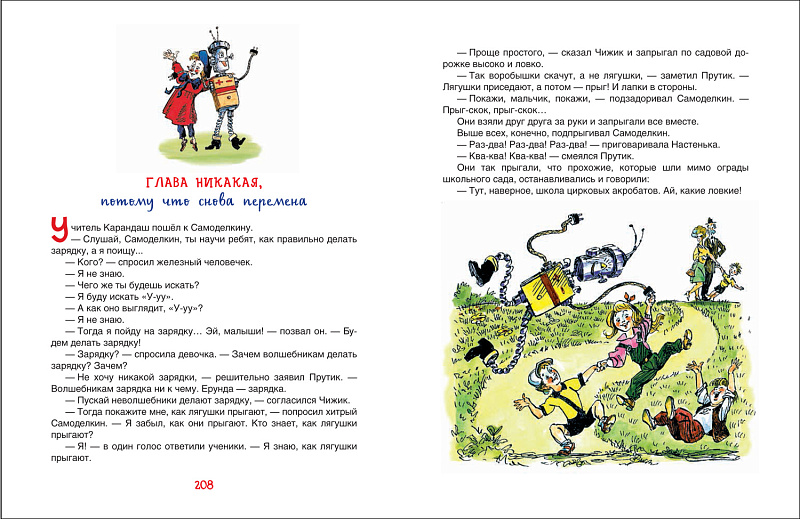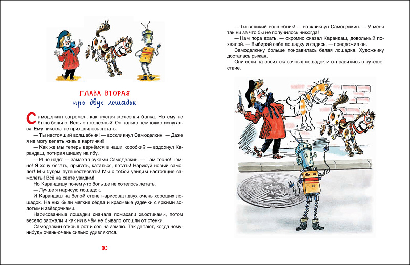 Книга расскажет о приключениях веселых маленьких человечков: художника Карандаша и мастера Самоделкина. Рисунки Карандаша мгновенно оживают, а Самоделкин может смастерить любой, даже самый сложный механизм. В книгу вошли две сказки: «Приключения Карандаша и Самоделкина» и «Волшебная школа Карандаша и Самоделкина». Иллюстрации народного художника РФ Анатолия Елисеева.
