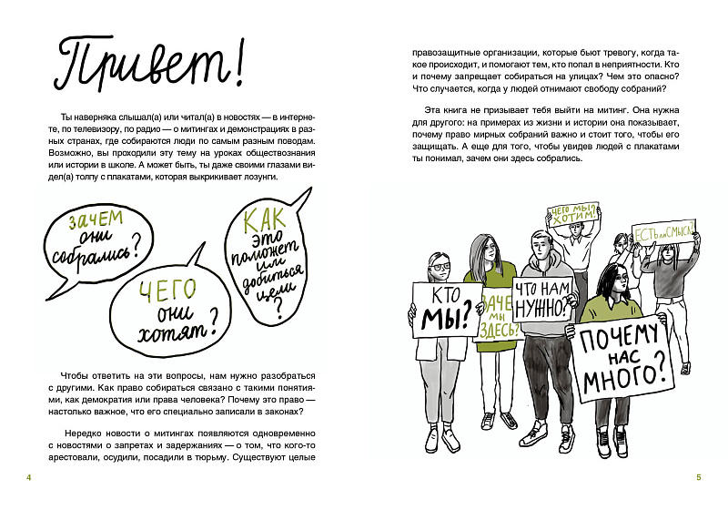Книга «Вы зачем здесь собрались?» — путеводитель по истории мирных собраний. Она рассказывает о том, как люди, начиная с древнейших времен, принимали самые разные решения сообща. Вместе с учениками Воображаемого 9 «Д» (Д – Демократия) ты узнаешь, зачем голосовали афиняне, как ирландцы придумали бойкот, что такое итальянская забастовка и многое другое. А ещё в книге есть задачи, которые помогут тебе понять, почему собрания важны для каждого, и научиться мирно выражать своё мнение вместе с другими.