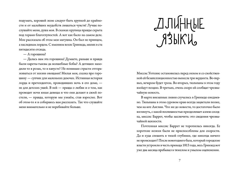 «Потрясающий роман, его шарм захватывает с первых строк, так приятно навеянных Джейн Остин. Мы на севере Англии, начало 19 века. Миссис Уоткинс, мать троих дочерей на выданье, узнает что богатый наследник соседнего имения ищет себе невесту. Лорд Хендерсон имеет наглость выставить условие знакомства: он принимает претенденток только у себя в замке и только без сопровождения. Они должны провести там ночь в комнате, где на кровати лежат семь матрасов. К викторианскому роману примешиваются мотивы из сказки Андерсена Принцесса на горошине, и многих других. Флор Веско умеет так переработать материал, что текст становится исключительно авторским и современным».